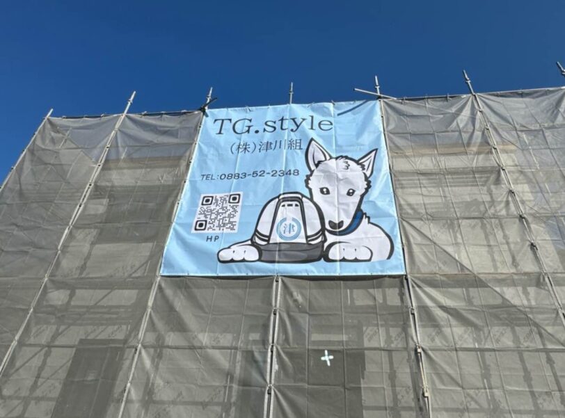 この度はご注文いただきありがとうございます。3600×3600mmの大きな幕ですが大胆にキャラクターを配置することで、とても存在感のある1枚に仕上がっています!キャラクターがヘルメットを抱えているのも、安全意識や信頼感をしっかりと表現されていて素晴らしいですね◎青空に映える淡いブルーの背景色も発色よく印刷されており清潔感や爽やかな印象を感じられます。お忙しい中、写真撮影とアンケートのご協力をありがとうございました。またのご利用を心よりお待ちしております!